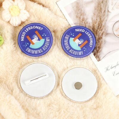 Tạo ghim cài tóc acrylic, huy hiệu nút và phụ kiện cá nhân hóa với logo in tùy chỉnh, thiết kế hoạt hình, nhân vật anime hoặc tên. Những chiếc ghim cài đa năng này có đế nam châm để gắn chắc chắn vào các bề mặt khác nhau.